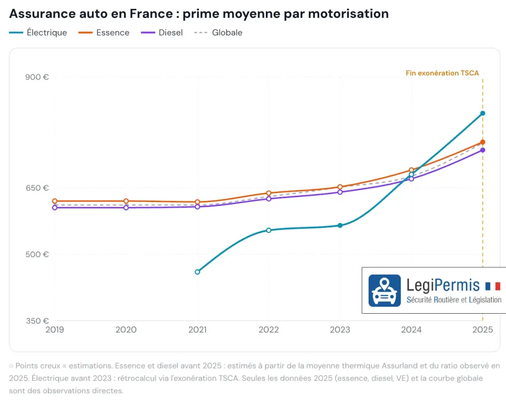 L’exonération a été réduite à 75% en 2024, puis supprimée au 1er janvier 2025 pour les nouveaux contrats. Résultat : une hausse mécanique d’environ 20% des primes VE. Sans ce changement fiscal, la hausse n’aurait été que de 6% environ, en ligne avec le marché général. (Source : MFA – Mutuelle Fraternelle d’Assurances)